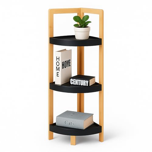 Hörnhylla med 3 hyllor, perfekt för kök eller badrum - hörnhylla, modern, fuktbeständig, platsbesparande, tillverkad av bambu, 33 x 23 x 61 cm