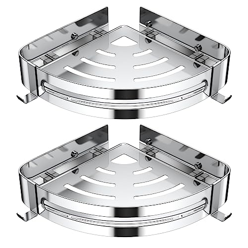 Anicoll Hörnhylla duschkorg duschhylla självhäftande SUS304 rostfritt stål duschhylla multifunktionella kökshyllor för dusch, kök med 4 krokar 2 handdukshållare duschförvaring, 2-pack