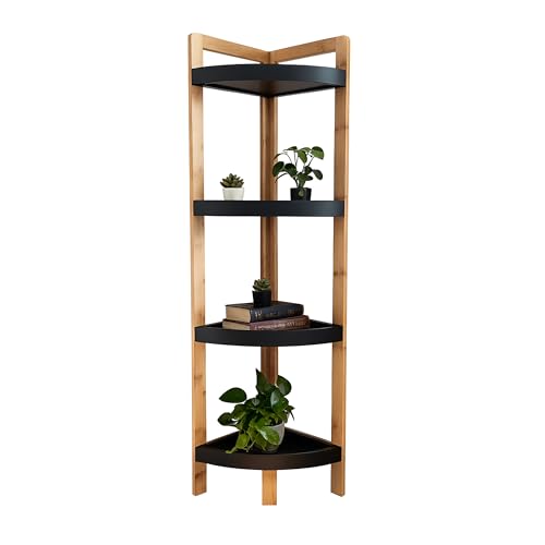 Relaxdays hörnhylla bambu, 4 halvrunda hyllor, HBT: 105,5 x 23 x 23 cm, stående hylla badrum och kök, utrymmesbesparande, natur/svart