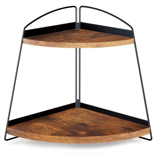 Puricon 2 våningar hörn arrangör kökshylla bänkskiva arrangör, förvaringshylla våningar badrum kosmetika arrangör hållare kryddhylla hörnhylla för badrum, kök – 1 brun