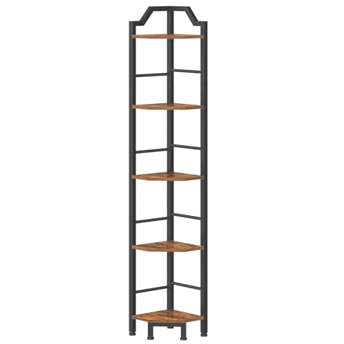 HOOBRO Smal hörnhyllstativ, 5-nivås hörnhylla, 160 cm hög multifunktionell hörnbokhylla, stående displayhylla växtstativ, för vardagsrum, studie, kök, rustik brun och svart BF100CJ01