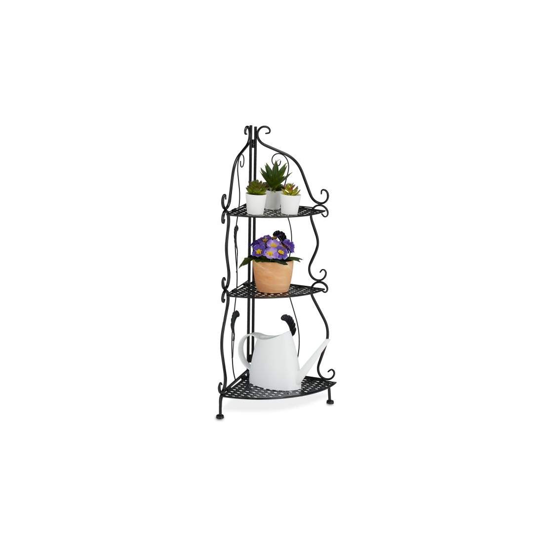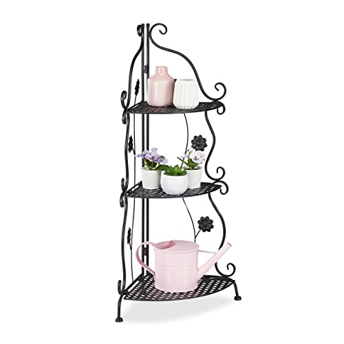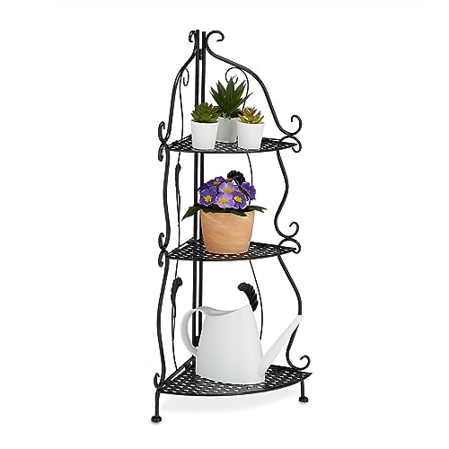 Relaxdays Blomhylla metall, 3-stegs växthylla, H x B x D: 82,5 x 31 x 31 cm, inomhus och utomhus, retro hörnhylla, svart