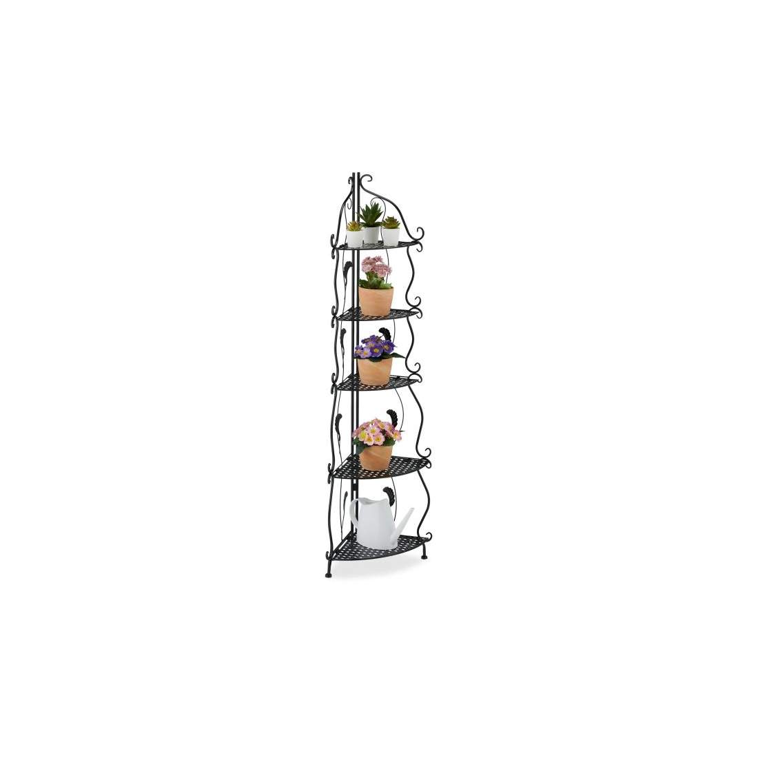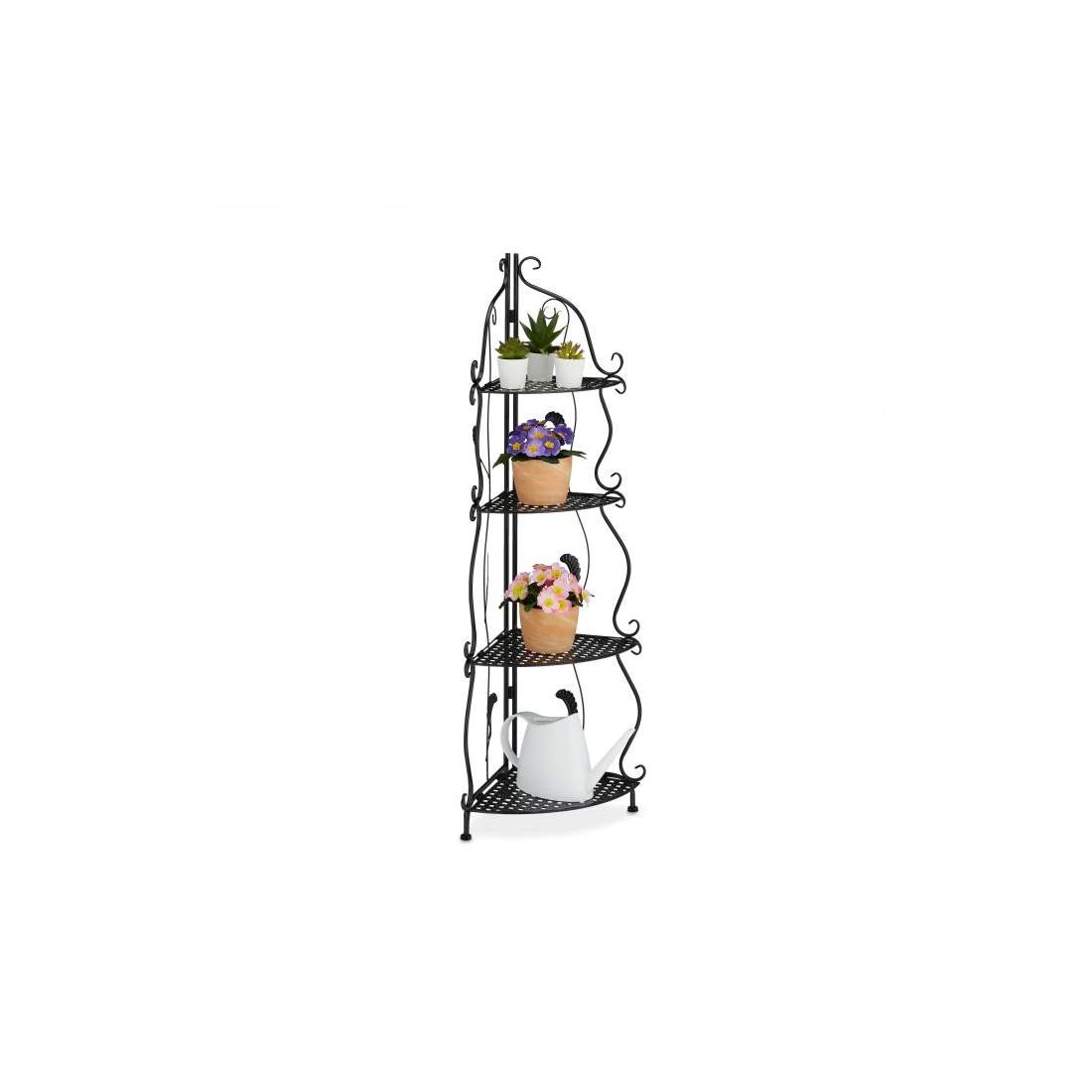 Relaxdays Blomhylla metall, 4-stegs växthylla, inomhus och utomhus, HxBxD 113,5 x 31 x 31 cm, retro hörnhylla, svart