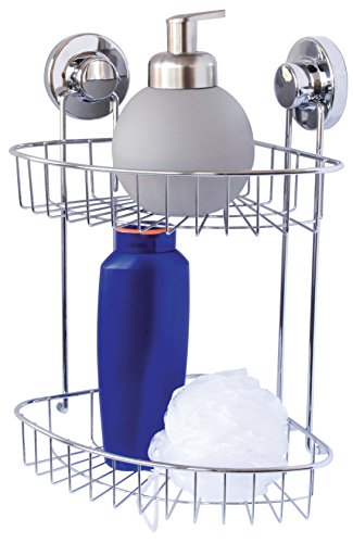 WENKO Vacuum-Loc® hörnhylla i 2 våningar, vägghylla för montering utan borrning, duschhylla med praktisk vakuumfastsättning, hylla för badrum och kök av förkromad metall, 22,5 x 29,5 x 16 cm