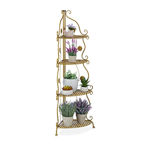 Relaxdays, guldblomhylla metall, 4-stegs växthylla, H x B x D: 113,5 x 31 x 31 cm, inomhus och utomhus, hörnhylla, järn