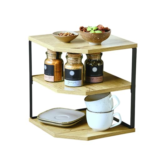 STWWO Organizer för kök bänkskivor, justerbar hörnhylla skrivbord organisatör metall kryddhylla med 3 våningar kaffebarställ vertikal hylla för matsal kök badrum, vit