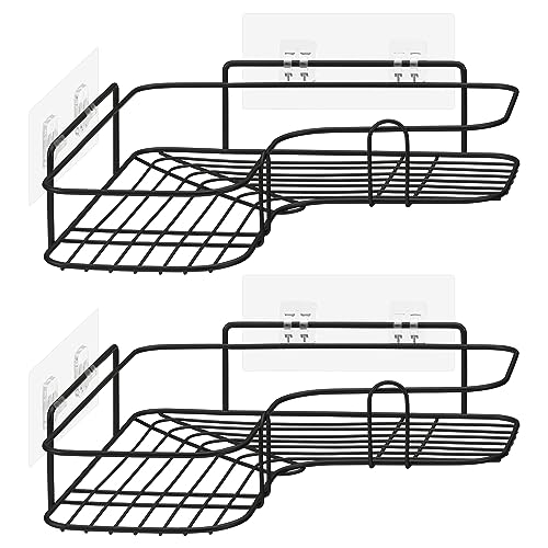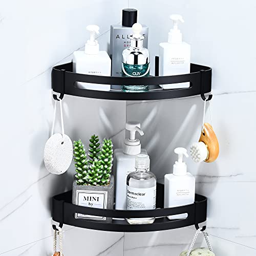 Duschhylla Svart, Duschhylla Utan Borrning Badrumshylla Hörnhylla Med Krokar Väggmontering Duschkorg Badrumstillbehör, Metall Duschhyllor Badrumshylla, Rostfri Badrum Hörnhylla (2 Stycken, Matt Svart)
