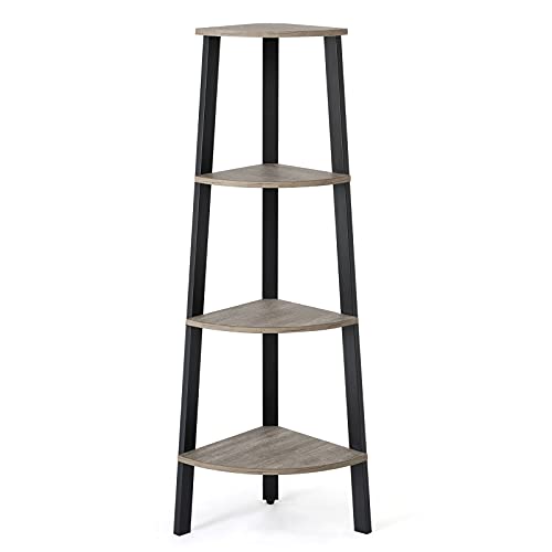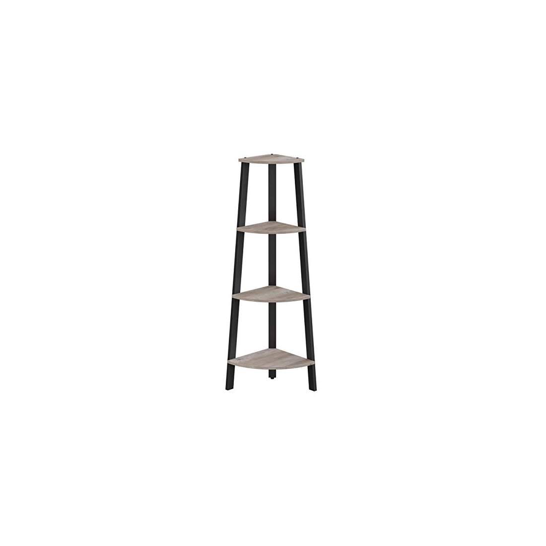 Mondeer hörnhylla, svart metall, steghylla med 4 våningar bokhylla, vintage hylla, litet trä hörnskåp, dörr hem vardagsrum sovrum balkong studierum kontor, grå