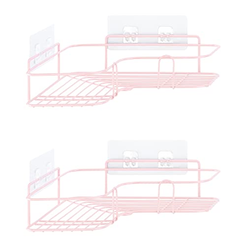 Navaris 2 x duschhylla utan borrning – badrum duschhylla hörnhylla set om 2 – badrumshylla vägg – hylla för dusch förvaring – metall dusch hörn – rosa
