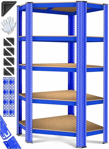 KESSER® Hörnhylla, förvaringshylla, tung lasthylla, källarhylla, 180 x 75 x 40 cm, upp till 875 kg, 5 justerbara hyllor, MDF-plattor, hylla av metall, plug-in, verkstadshylla, källare, garage