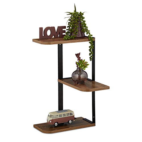 Relaxdays hörnhylla, 3 sicksackhyllor, HBT: 42,5 x 26,5 x 26,5, vägghylla vardagsrum, kök, MDF, metall, brun/svart
