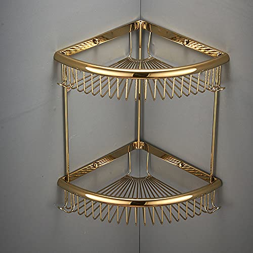 Rostfri 2-nivåer guld duschhylla – hörnhyllor med krok väggmonterad badrum för badtillbehör mässing förvaringsställ prydligt och snyggt