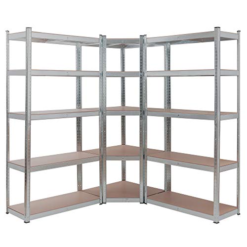 Arebos hörnhyllor | Heavy Duty-hyllor | Boltless Shelving 875kg | Lätt att montera med plug-in system | 70x70x180 cm | 5 hyllor av MDF | upp till 175 kg per hylla | Galvaniserad