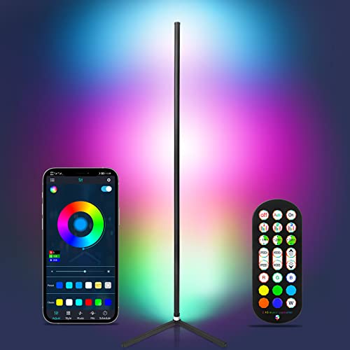 KingSom LED-golvlampa, RGBW hörnlampa, smart golvlampa med fjärrkontroll och Bluetooth APP, 16 miljoner färger, musik synkronisering och timer, modern golvlampa