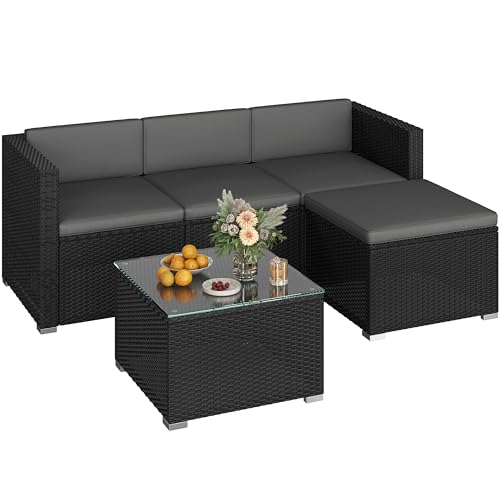 Yaheetech Set med 5 trädgårdsmöbler, balkongmöbler i set av PE-rotting väderbeständiga terrassmöbler utomhus med 2 hörnsoffa och soffa och stol och sidobord och sittdyna för trädgård/balkong/terrass,