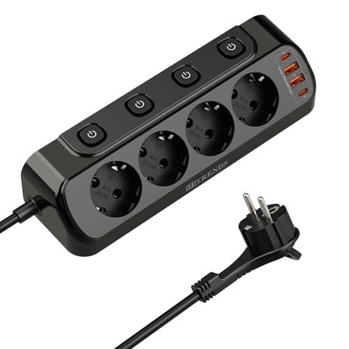 Hörnuttag kök 4-faldigt, bordsuttag med 2 USB C, hörnuttag med 2 USB, skrivbordsuttag, köksuttag, väggmontering, flera grenuttag, strömbrytare, 2 m, svart