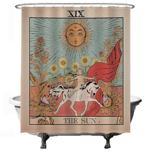 Ulticool Duschdraperi, sol, natur, blommor, tarot, horoskop, vintage, retro, tvättbart, antimögeleffekt, vattentätt, med 12 ringar, terrakotta, 180 x 200 cm