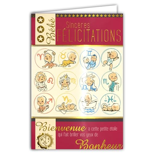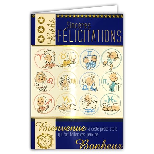 Horoskop kort stjärntecken baby pojke grattis födelse eller adoption text guld välkommen till denna lilla stjärna som får dina ögon att skina med lycka illustrationer kuvert 12 x 17,5 cm 66-1034-B