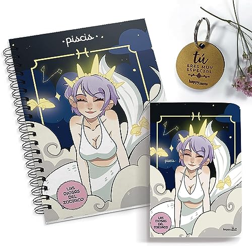 HappyMots - Pack Presentförpackning Horoskop | A5 anteckningsbok + A6 + nyckelring Du är speciell | Zodiac Sign: PISCES | Original gåva att överraska