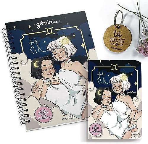 HappyMots - Pack Presentförpackning Horoskop | A5 anteckningsbok + A6 anteckningsbok + nyckelring Du är speciell | Zodiac Sign: GEMIN | Original gåva att överraska