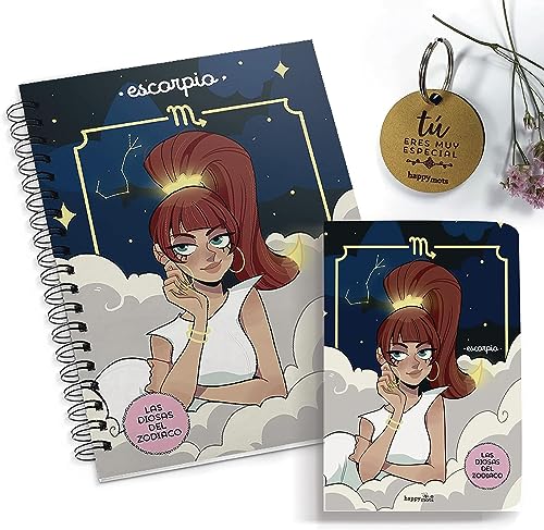 HappyMots - Pack Presentförpackning Horoskop | A5 anteckningsbok + A6 anteckningsbok + nyckelring Du är speciell | Zodiac Sign: SCORPIO | Original gåva att överraska