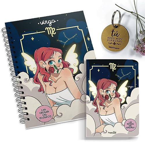 HappyMots - Pack Presentförpackning Horoskop | A5 anteckningsbok + A6 + nyckelring Du är speciell | Zodiac Sign: VIRGO | Original gåva att överraska