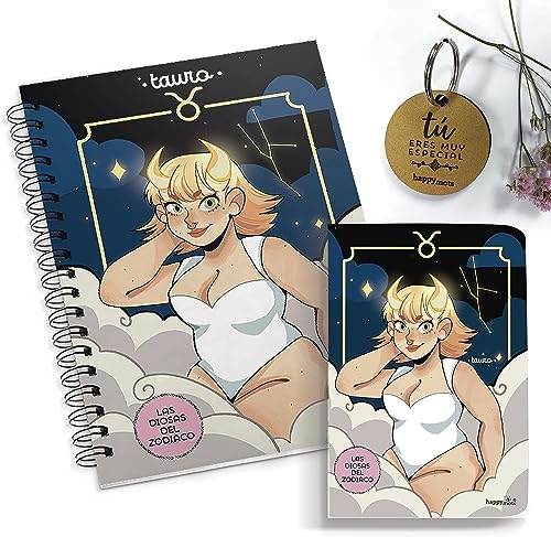 HappyMots - Pack Presentförpackning Horoskop | A5 anteckningsbok + A6 + nyckelring Du är speciell | Zodiac Sign: | Original gåva att överraska