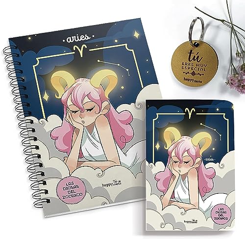 HappyMots - Pack Presentförpackning Horoskop | A5 anteckningsbok + A6 + nyckelring Du är speciell | Zodiac Sign: ARIES | Original gåva att överraska