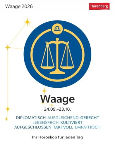 Waage Sternzeichenkalender 2026 - Tagesabreißkalender - Ihr Horoskop für jeden Tag: Tischkalender 2026 mit täglichem Horoskop. Kleiner Kalender mit täglichem Blick in die Sterne