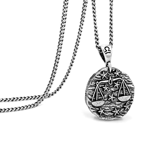 Astrologi horoskop skiva medaljong hänge zodiak halsband för män kvinnor antiqued 925 sterling silver all konstellation e Silver, colore: SILVER, cod. SSTR-P850-LIBRA