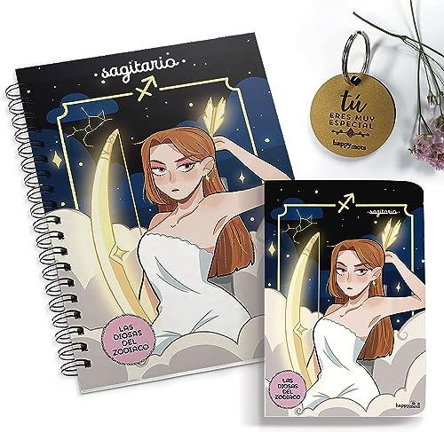 HappyMots - Pack Presentförpackning Horoskop | A5 anteckningsbok + A6 anteckningsbok + nyckelring Du är speciell | Zodiac Sign: SAGITTARIUS | Original gåva att överraska