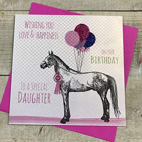 Vita bomullskort E69-D "Horse Wishing You Love and Happiness To A Special Daughter On Your Birthday" handgjort födelsedagskort