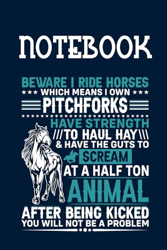 Beware I Ride Horse Which Mean I Own Pitchforks Have Strength To Haul Hay And Have The Guts To Scream At A Half Ton Animal After Being Kicked You Will ... Blue Cover Fun Gifts for Everyone: Notebook