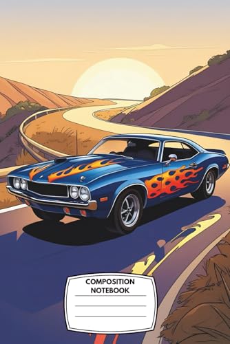 Composition Notebook: Wide Ruled, 6x9”, 120 Pages – Retro Muscle Car Cover with Classic Flames and Chrome Detail – Perfect for Car Lovers, Gearheads, or School Notes with Horsepower