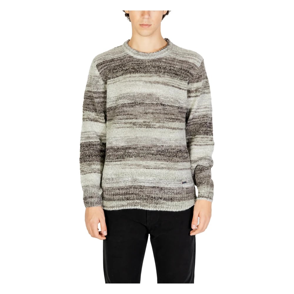Gianni Lupo, Stickade Tröjor , Herr, XL, Randig Stickad Tröja Höst/Vinter Grå