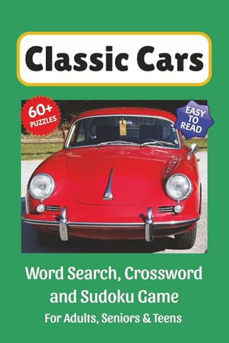 Classic Cars Puzzle Book: Word Search, Crossword and Sudoku Game, Easy to Read Print about Classic Cars, Muscle Cars, Hot Rods and More | 6x9 inches, ... for Vacations, Holidays and Leisure Time