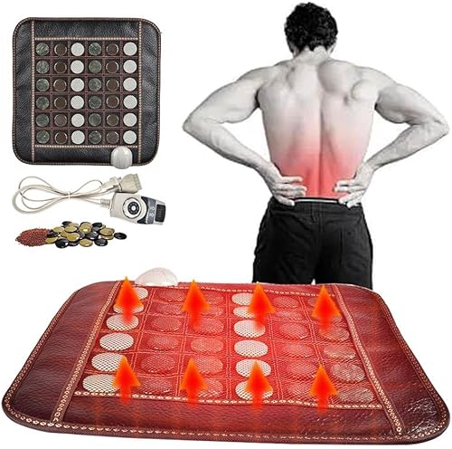 ICEMOB Långt Infraröd Naturlig Jade Turmalin Värmedyna Pro Hot Stone Therapy Mat Med Smart Controller, Infraröd Värmeterapi Läkning, Justerbar Temperatur Och Auto-Shut, 45 * 45 cm