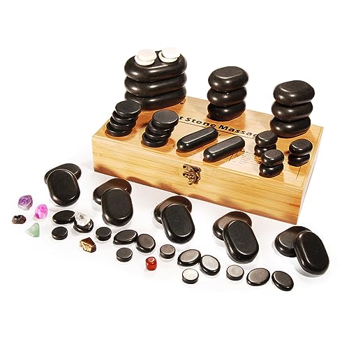 Master Massage Hot Stone Set 100% basalt stenar för SPA kroppsmassage med bambulåda (70 st)