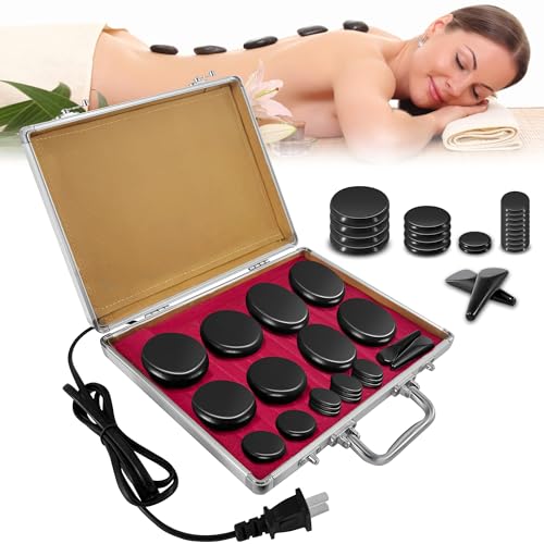 Ricyea Hot Stone massageset, lavastenar för massage, 21 stycken basalt massagestenar i värmeanordningen, bärbar, justerbar temperatur, lämplig för privata användare, spa, massageterapi och avkoppling