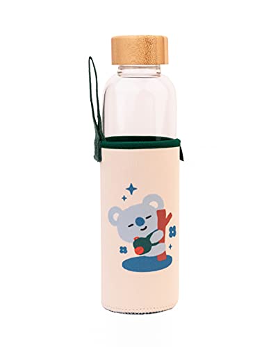 Grupo Erik BT21 Koya Glass Water Bottle - 500ml / 17oz - Glass Bottle - Hot&Cold Water Bottle - Water Bottle 500ml - BTS Water Bottle - BT21 Merchandise - BT21 Koya - Kawaii Water Bottle