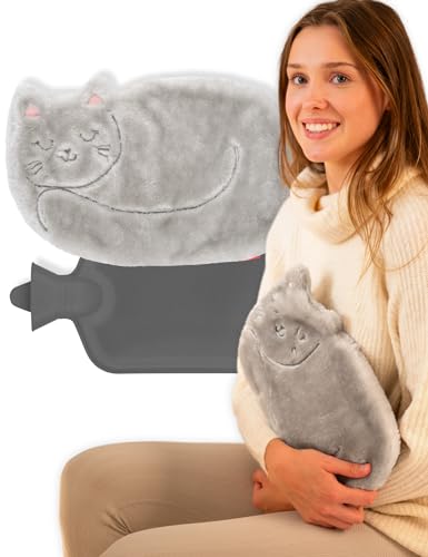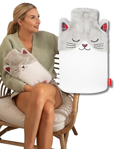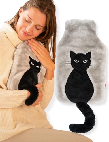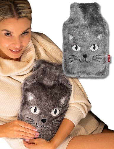 soxo Varmvattenflaska Hot Water Bottle Värme Heater Värmare Värmeflaska Plyschöverdrag Lindrar Muskelvärk Katt 2