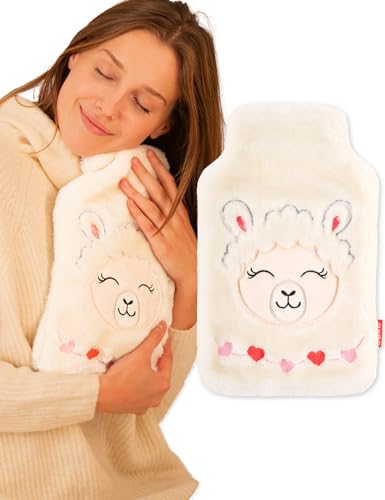 soxo Varmvattenflaska Hot Water Bottle Värme Heater Värmare Värmeflaska Plyschöverdrag Lindrar Muskelvärk Lama