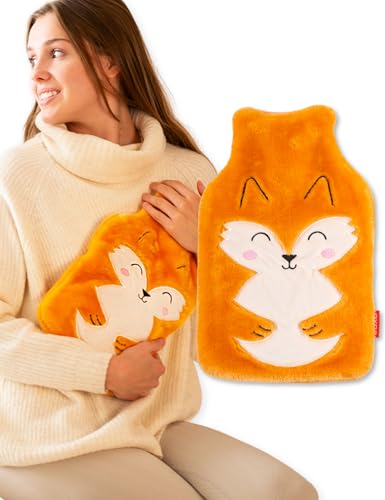 soxo Varmvattenflaska Hot Water Bottle Värme Heater Värmare Värmeflaska Plyschöverdrag Lindrar Muskelvärk Räv