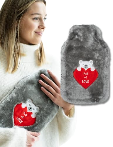soxo Varmvattenflaska Hot Water Bottle Värme Heater Värmare Värmeflaska Plyschöverdrag Lindrar Muskelvärk Full Of Love