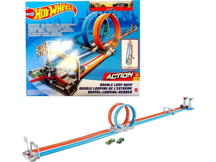 Hot Wheels Action Double Loop Dash, Track Set, Set Med Fordon Och Bana, 5 År, Plast, Blå, Orange