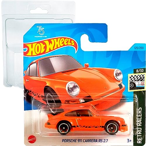 Hot Wheels Porsche 911 Carrera Orange RS 2.7 Retro Racers 8/10 (125/250) HKJ82 kort Mattel 2023 + Blister & Kortskyddspaket