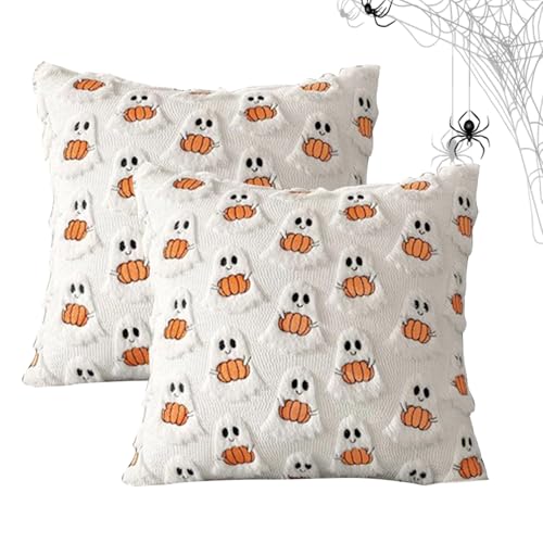 Halloween Pillow Covers, Pumpkin Ghost, 2 Pieces, Room Decor, Thanksgiving Decorations, Halloween Party Supplies for Autumn, Hotel, Dorm, Sofa, Bed, Farmhouse, Patio, Porch