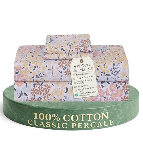 Fjäder och söm 100% bomull king size lakanset, 300 TC andningsbara och kyllakan, 4 st percaleväv, sängkläder set, 40 cm djup ficka - hotell premium mjukt bäddset (kung, viktoriansk blommig)