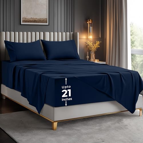 Simple Deluxe Queen Size 4-delat lakanset i 4 delar, lättskött, mikrofiber, bekväm, andningsbar, kylande sängkläder med djup ficka, krympning och blekningsbeständig, hotell, lyx, blå
