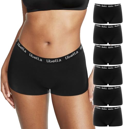 Boxershorts dam bomull, hipstertrosor damkalsonger damtrosor i 100 % bomull steg, ventilerande boxershorts underkläder kvinnor, hotpants dam, 6-pack 3429, svart, M